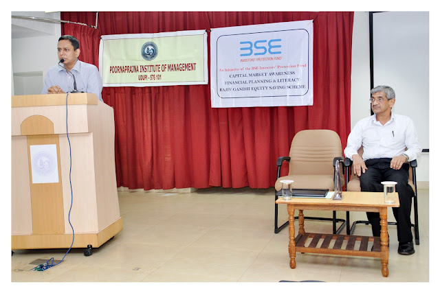 Poornaprajna Institute of Management organised an corporate interaction session at Prajna Hall on December 16th 2013 by inviting Mr.Ashok Kumar, the managing director of Lotus knowealth limited, Mumbai . The workshop was also an initiative of the BSE’s Investors Awareness Programme . Mr. Ashok kumar addressed both first year and second year MBA students and created awareness about the operations of the capital market. The resource person threw light on the concepts of financial literacy and financial planning processes. He paid special attention to the Rajiv Gandhi Equity Savings Schemes. Director of the institution Dr.M.R.Hegde and faculty incharge of guest lecture programmes Mrs.Bharathi Karanth , along with the MBA students are seen in the photos attached. Ms.Aparna Bharadwaj, Ms.Aparna V K and Mr.Jayaraj acharya conducted the programme.