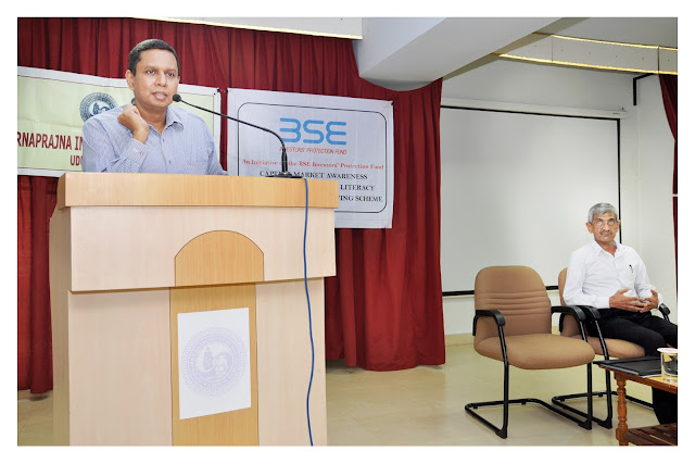Poornaprajna Institute of Management organised an corporate interaction session at Prajna Hall on December 16th 2013 by inviting Mr.Ashok Kumar, the managing director of Lotus knowealth limited, Mumbai . The workshop was also an initiative of the BSE’s Investors Awareness Programme . Mr. Ashok kumar addressed both first year and second year MBA students and created awareness about the operations of the capital market. The resource person threw light on the concepts of financial literacy and financial planning processes. He paid special attention to the Rajiv Gandhi Equity Savings Schemes. Director of the institution Dr.M.R.Hegde and faculty incharge of guest lecture programmes Mrs.Bharathi Karanth , along with the MBA students are seen in the photos attached. Ms.Aparna Bharadwaj, Ms.Aparna V K and Mr.Jayaraj acharya conducted the programme.