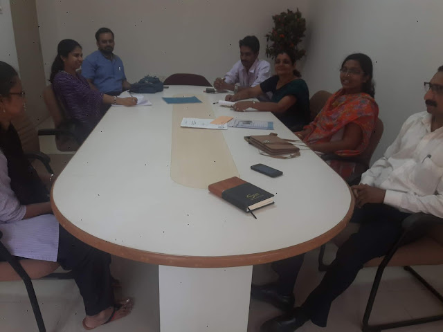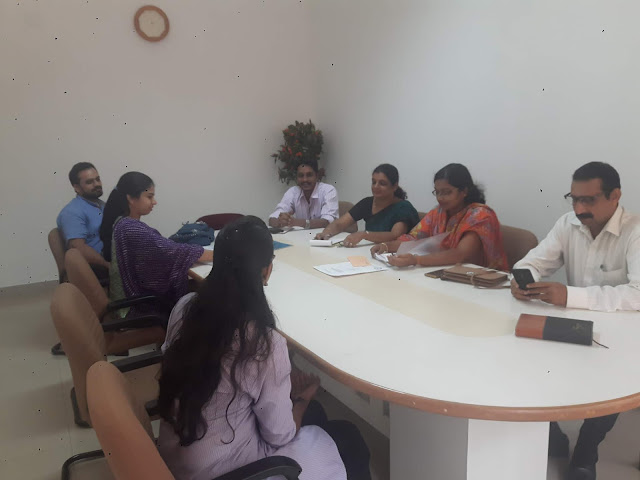 A round table conference of the alumni , present coordinators of alumni programme, director and the faculty members of PIM.  Mr. Shivanand Bhandarkar, the placement incharge , Mrs. Bharathi Karanth, Staff incharge of alumni and the IQAC coordinator Dr.Navinkumar K.R along with the director Dr.Bharath V can be seen.