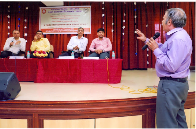 A Panel discussion on Union Budget 2018-19 Implication on different sectors by CA M.Sridhar Kamath, udupi, CA K Narasimha Kini Udupi, CA Krishna Acharya Udupi and Dr. Ganesh Bhat