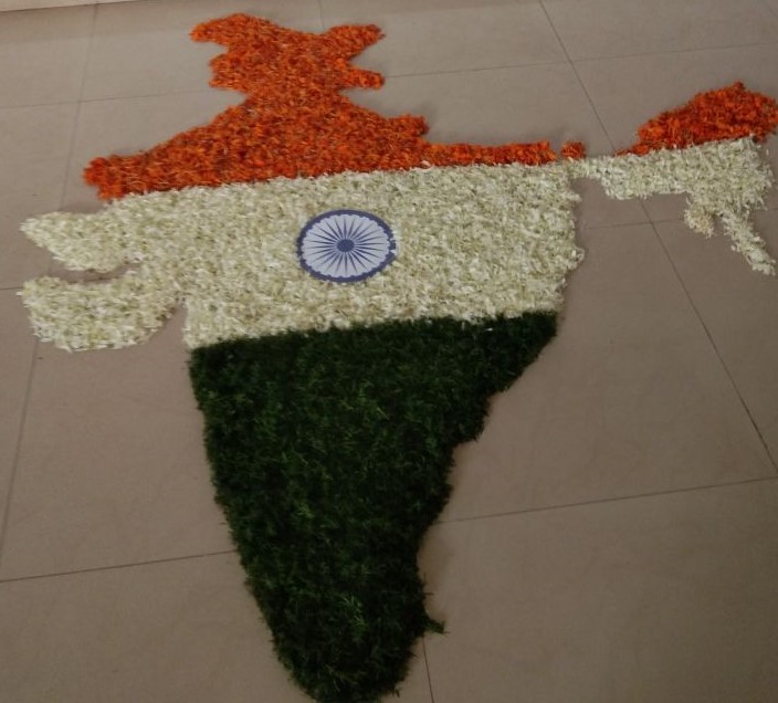The cultural club members had created a festive environment in PIM on the eve of the inauguration of the cultural club for the academic year 2018-19.  The cultural committee members had named the cultural club of this academic year as ‘Poornotsav’.  Students had decorated the prajna hall with flowers, handicrafts and balloons.  Outside the Prajna Hall, students of 2nd MBA namely Varun , Sooraj, Akshay and Jnanesh under the team leadership of Mr.Sundindhra Bhat had drawn an Indian Map fully decorated with flower petals which was a feast for the eyes of onlookers.  The festive atmosphere inside Prajna Hall was further supported by soft music which created altogether, a traditional festive ambience.  Students had conducted drawing competition and essay writing competition on account of the Independence Day celebrations.  Drawing competition was based on the theme of independence day.  First prize in drawing competition was shared between two students namely Sundhidra Bhat and Anusha. Second prize was also shared by two students namely Jnanesh and Abhishek .