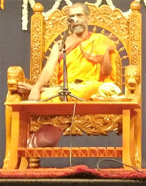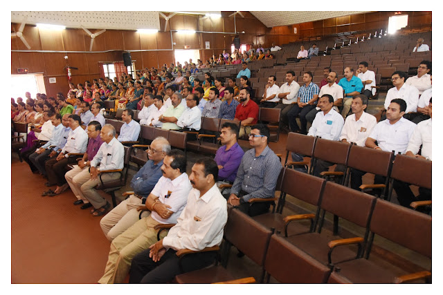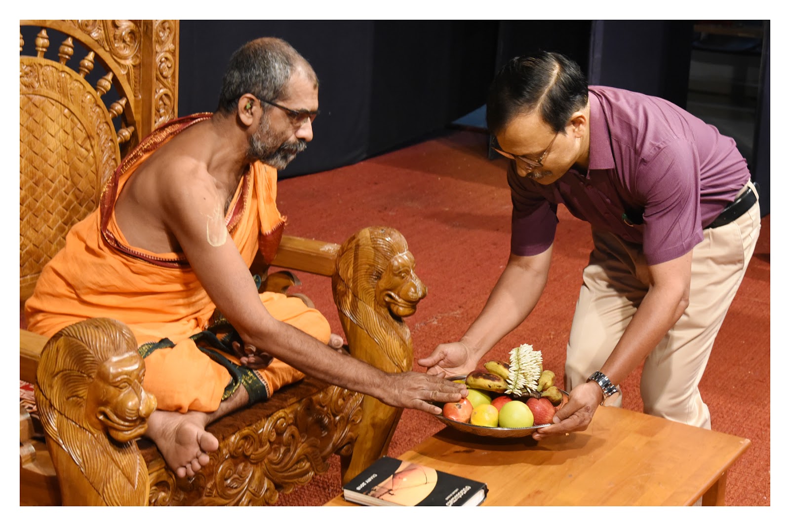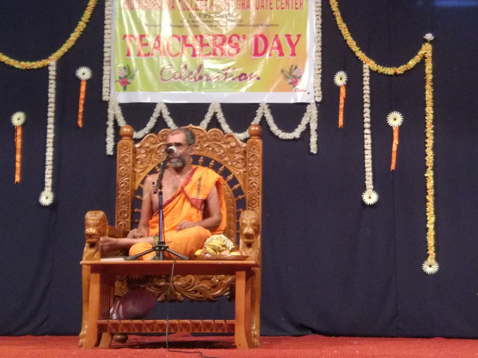 The programme commenced with Prayer Song of Poornaprajna Institutions. The Swamiji explained in detail 10 qualities of Bhimasena to be possessed by teachers; they are: Bhakti, Vyan, Vairagya, Pragna, Medha, Dhriti, Sthithi, Yoga, Prana and Bala are ten qualities. The teachers should be remembered after their school days, that is why, for example, the P. Narayana Rao of Poornaprajna College, Srinivasa Rao of Admar Institutions, you should not be “Priya” to student community, instead, must be “Hithyshi” to students, that is why, we have been practising collecting of feedback from performing students and not the students who are less than average. He appealed to students to mend the students positively, he informed that while making Krishna Pooje, he has been praying with Krishna for the development of faculty of Poornaprajna Institutions