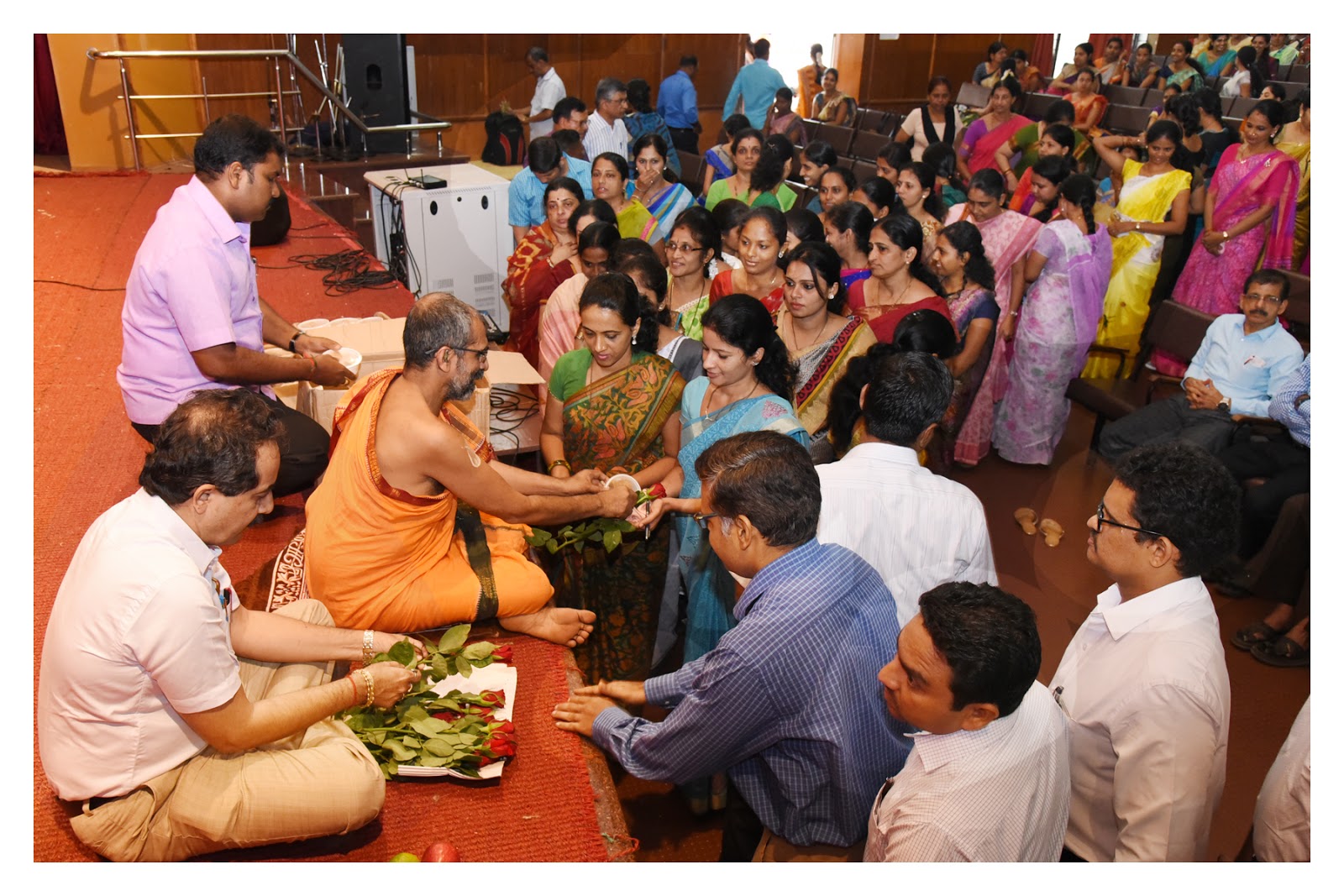 Teachers Day was celebrated at Poornaprajna Institutions on 5 September 2018. The programme was conducted at Poornaprajna Auditorium. Dr. Srikanth Rao, HOD of Kannada compered the programme and welcomed the Swamiji. All the faculty of Poornaprajna Institute of Management attended the programme. Dr. Chandrashekar, Secretary of Poornaprajna Institute of Management, provided sweets to all the teaching and non-teaching fraternity of Poornaprajna Institutions. His Holiness Sri Vishwapriya Theertha Swamiji felicitated Dr. G.S Chandrashekar for showing his respect towards teachers with his noble gesture. Sri Pradeep Kumar, Treasurer of the Poornaprajna Institute of Management was present on this occasion.