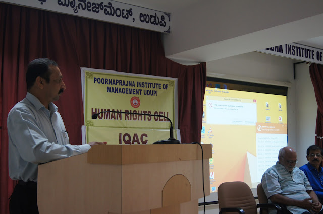Awareness about the constitutional procedures for dealing with crimes drastically brings down the number of crimes and results in a crime free society. 95% of the people commit crimes not with an intention to commit crime but out of emotional outbursts and mainly due to absence of knowledge about the legal power which can result in punishment of the guilty said Dr. Ravindranath Shanbagh the president of Human Rights Protection Foundation and the Consumer Forum, Basrur at Poornaprajna Institute of Management on 29th Monday 2018. He was addressing the students at Prajna Hall of the institution on the workshop organised by the Human Rights Cell of the Institute on the topic âEmpowerment of the Weaker Sections of the Societyâ.