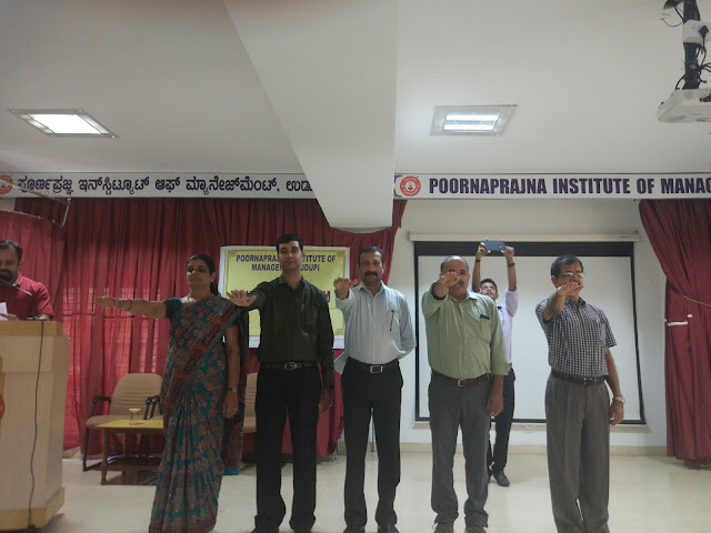 Poornaprajna Institute of Management observed Rashtriya Ekta Diwas or National Unity day on 31st October 2018 to commemorate the 143rd birth anniversary of Sardar Vallabhabhai Patel also known as the Ironman of India. Rashtriya Ekta Diwas Pledge was taken by all the faculty members and first and second year MBA students of Poornaprajna Institute of Management at 11.00 am at Prajna Hall. Director of the Institution Dr.Bharath V and the Dean Dr.Sureshramana Mayya along with all the students and faculty members took the pledge on this special occasion. Mr.Shivananda Bhandarkar, the faculty of the institution read out the pledge which was followed by all others at PIM Hall. The pledge involved the statements that all of us will dedicate ourselves to preserve the unity, integrity and security of the nation and will also strive hard to spread this message among our fellow countrymen. It also stated that the pledge was taken in the spirit of unification of our country which was made possible by the vision and actions of Sardar Vallabhbhai Patel and we will make our own contribution to ensure internal security of our country.