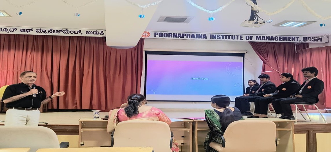 Director of the Institute Dr. P. S. Aithal and other faculty members from the department of MBA were present during the session. Dr. Krishna Kothai gave valuable feedback on the performance of the students. Faculty members from the Department of MBA Prof. Sujatha G L and Dr. Diana Saldana judged the performance of the teams. Students from first year MBA Ms. Kanchana Shivananda Jammanakatti (B Sec) coordinated the whole session. Kavana (A Sec) delivered the welcome address, and Ms. Arathi Shettigar (B Sec) proposed the vote of thanks.